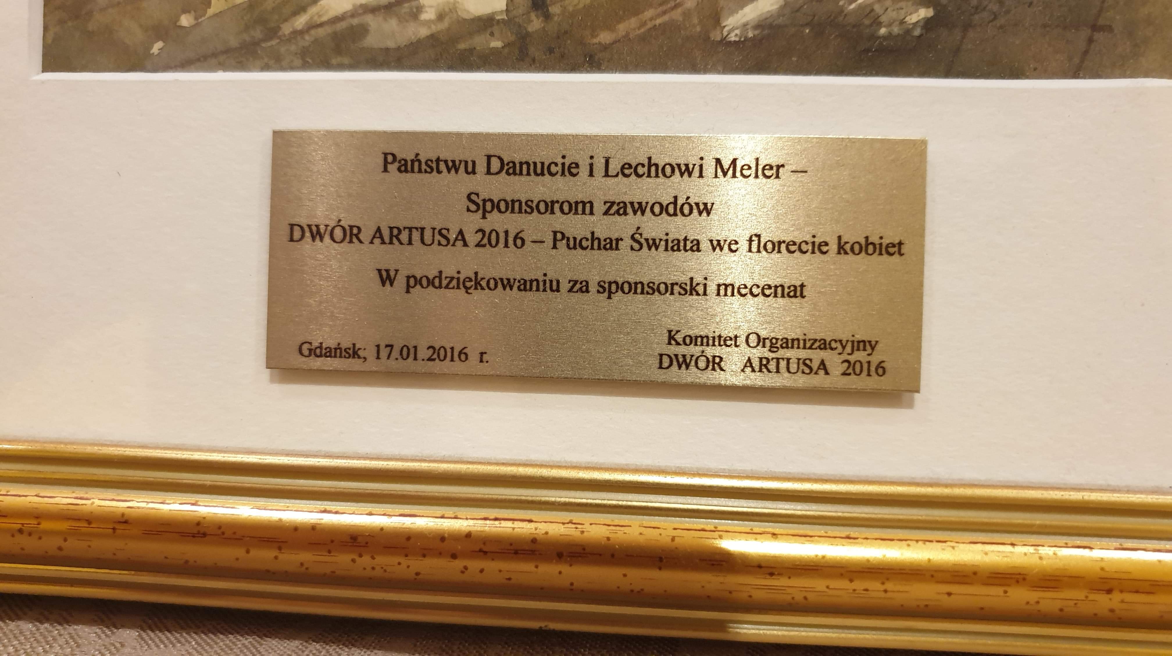 - Podziękowanie za sponsorski mecenat-Puchar Świata we florecie kobiet - 2016
