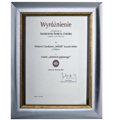 - Wyróżninie - Smakołyk Święta Chleba - 2008