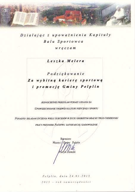 - Podziękowanie za całokształt działalności sportowej - 2015